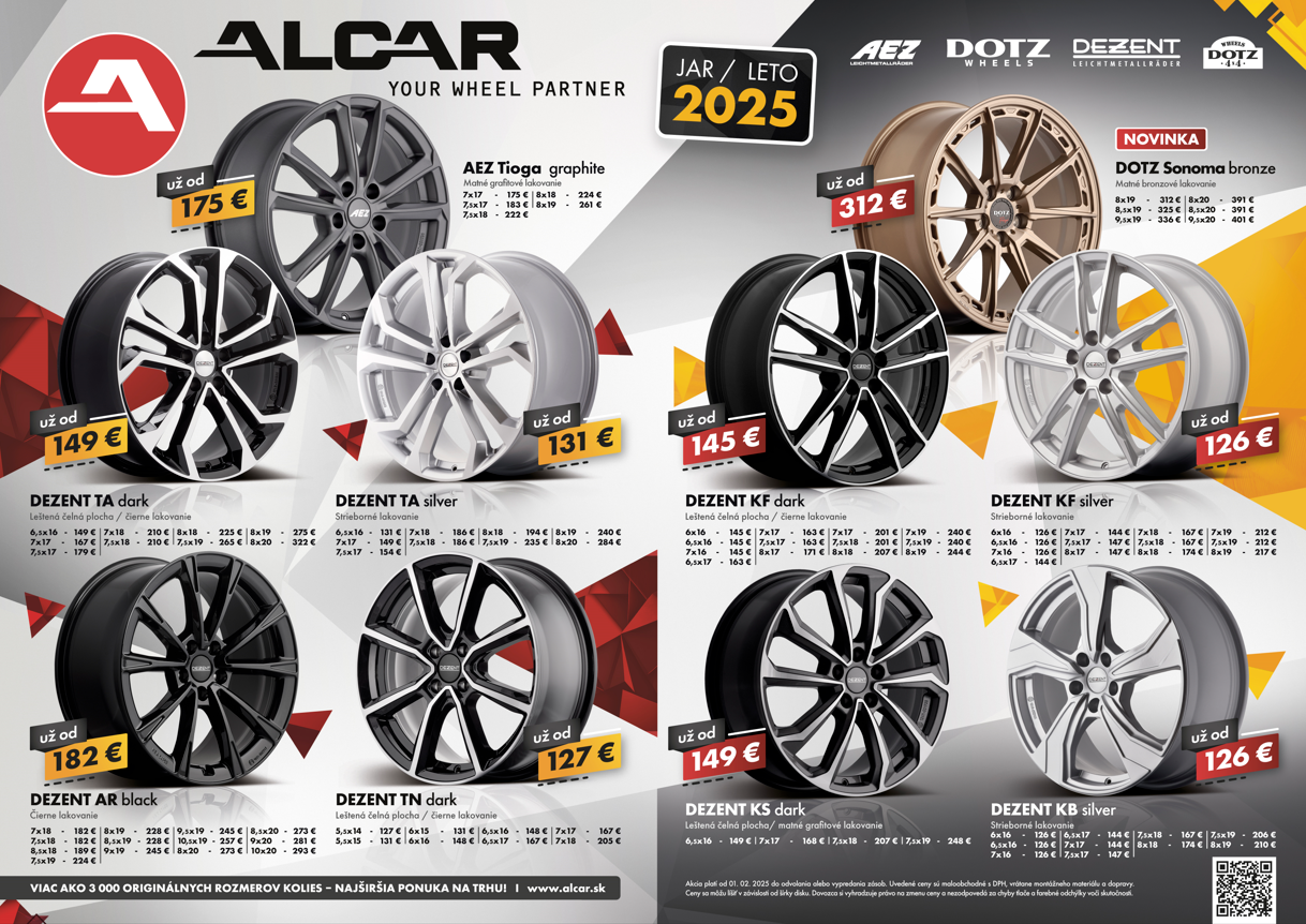 Od 1.2.2025 vstupujú do platnosti nové cenníky na ALU disky, oceľové disky pre osobné a úžitkové vozidlá, dojazdové kolesá, pneumatiky a nový cenník na TPMS sortiment.